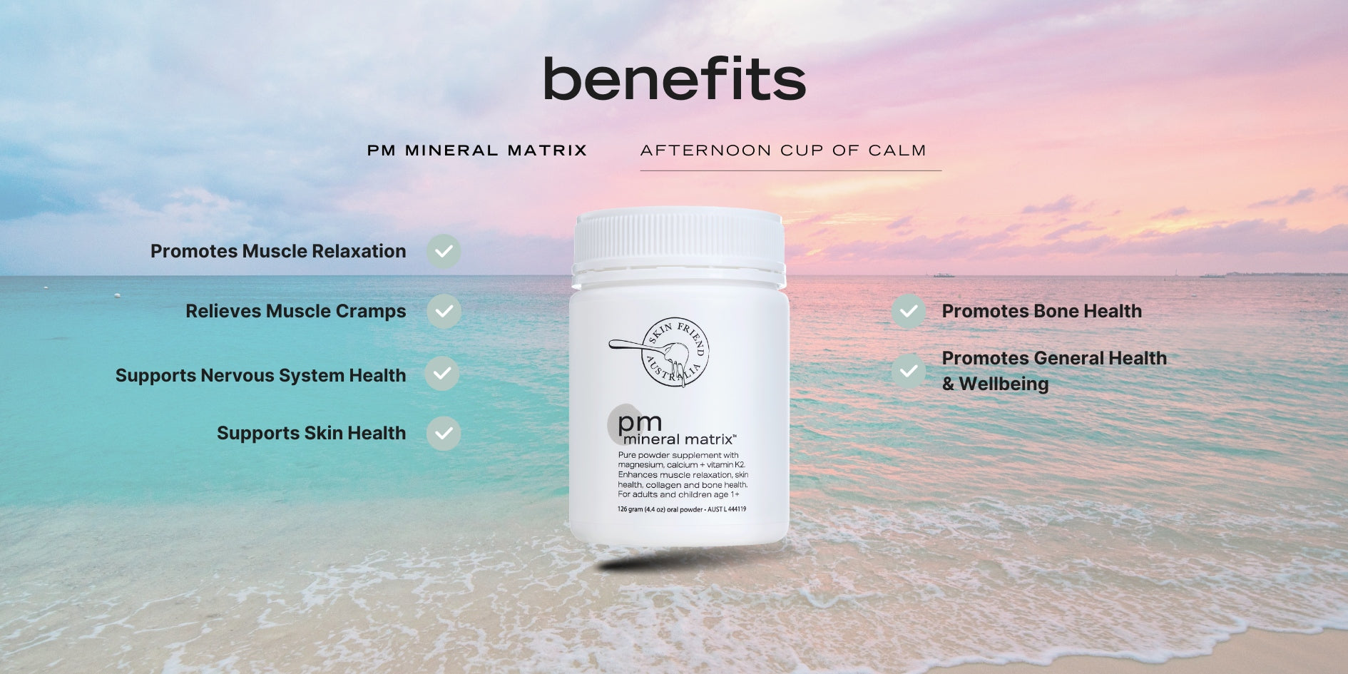 What could PM do for you? It supports healthy sleeping patterns, muscle relaxation, skin health, bone health, and general health and wellbeing. So you don't need a separate bone health and sleep supplement.